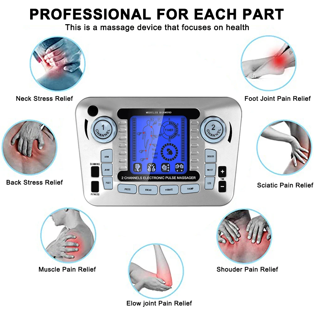 12 Modes Digital Electric Pulse Massager Tens EMS Muscle Stimulator Therapy Machine Body Massage Pain Relief Tool Health Care