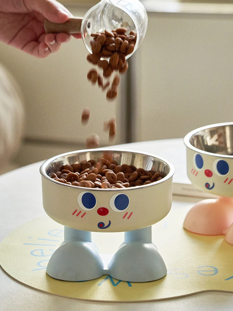 1pc cute elevated bowl - with non-slip mat, easy to clean, protect the cervical spine, pet cat food bowl, dog feeding bowl