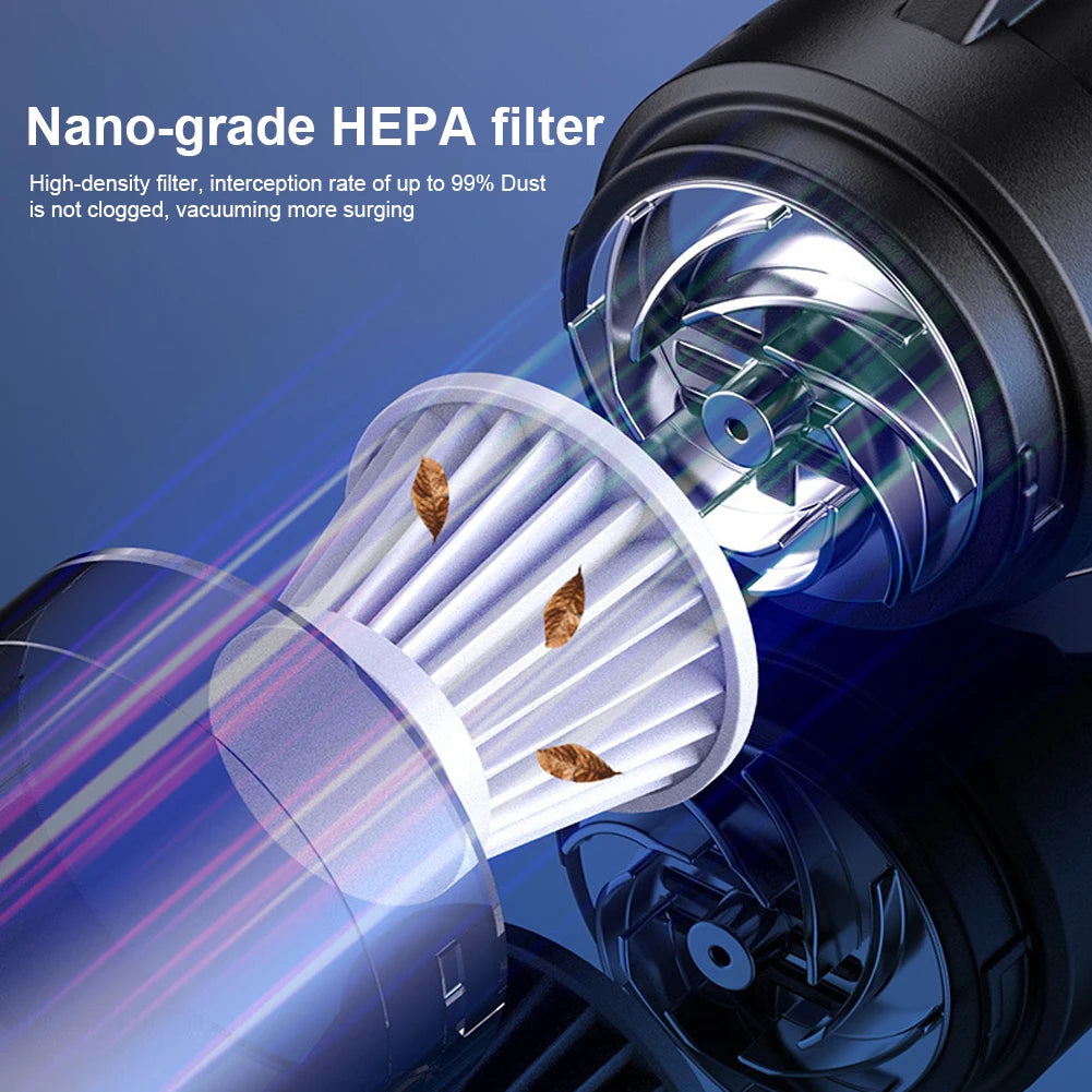 2. Powerful Suction Motor: This blowing suction car cleaner is driven by a high-quality motor, it provides strong suction to effectively remove dust, debris, pet hair, and other dirt, keeping your car interior spotless.