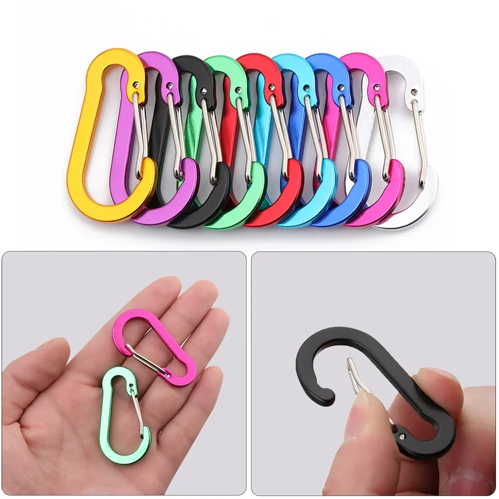 Upgrade your outdoor gear with our versatile Aluminum Alloy Carabiners!These lightweight yet durable spring snap hooks feature a secure safety lock mechanism and smooth wire gate design.Perfect for camping, hiking, fishing, and everyday use, these multi-purpose clips are ideal for gear organization, keychains, backpack attachments, and equipment hanging.With 9 vibrant color options, you can color-code your gear for easy identification.