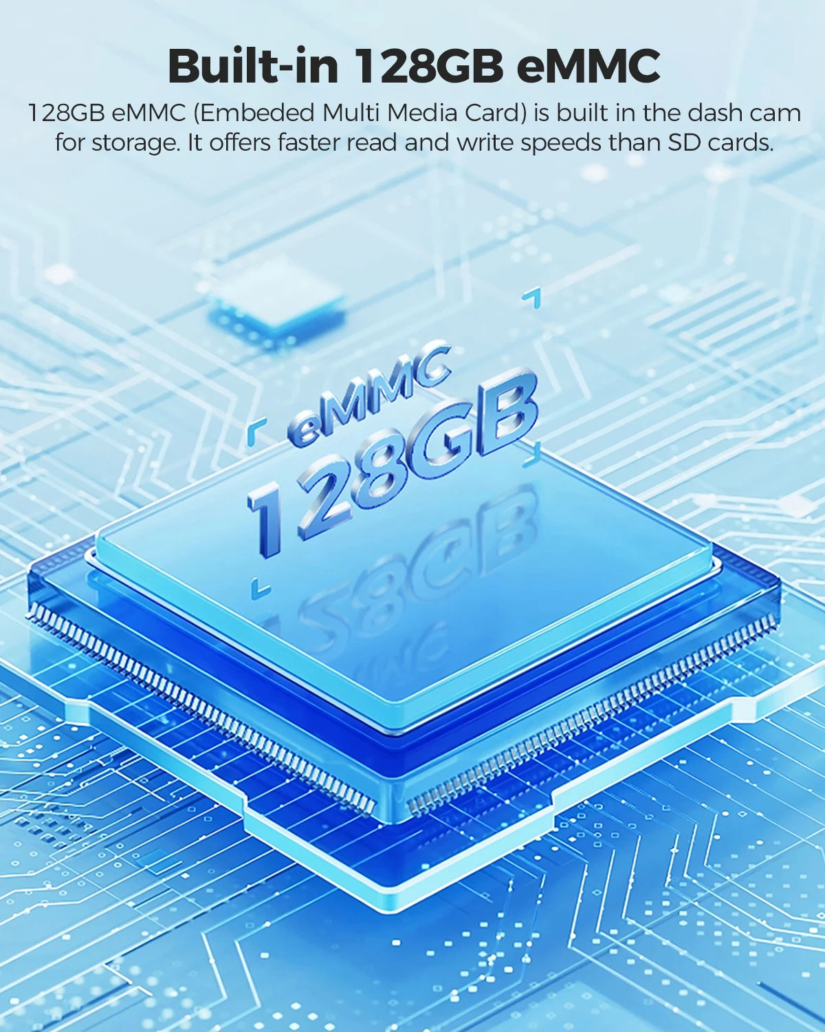 Whether the car is driving or parking, when the G-sensor receives a sudden impact or collision signal, the dash cam will automatically shoot, save and lock the video. The loop recording will skip the emergency locking video. All important videos will remain in memory unless you delete them manually.