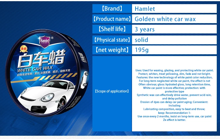 Hamlet 195g White Car special Wax for Car Polishing Waterproof Maintenance Coating Automotive Scratch Repair Solid Wax