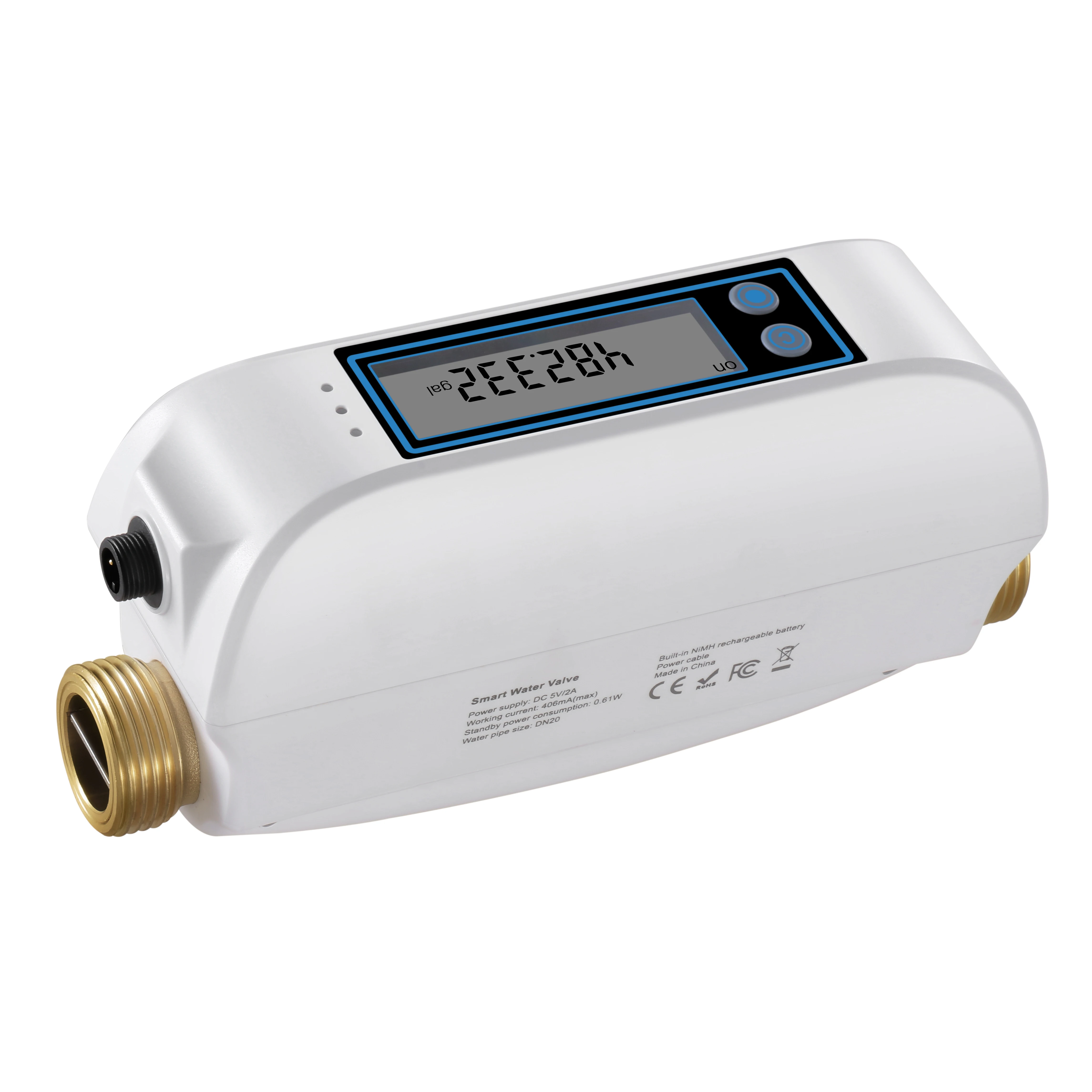 Haozee Tuya Smart WiFi Water Valve Shutoff Water Flow Meter Built in Rechargable Battery for DN20 3/4-Inch Diameter Pipe