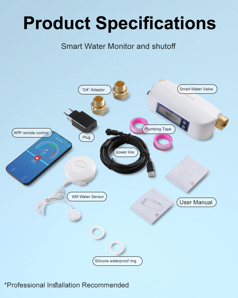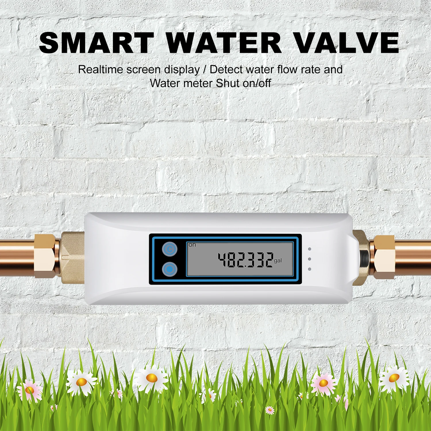 Haozee WiFi Smart Water Valve and Automatic Shutoff,Water Consumption Monitoring and LCD Screen Display of Water Flow Rate,Built in Rechargable Battery, for DN20 3/4-Inch Diameter Pipe