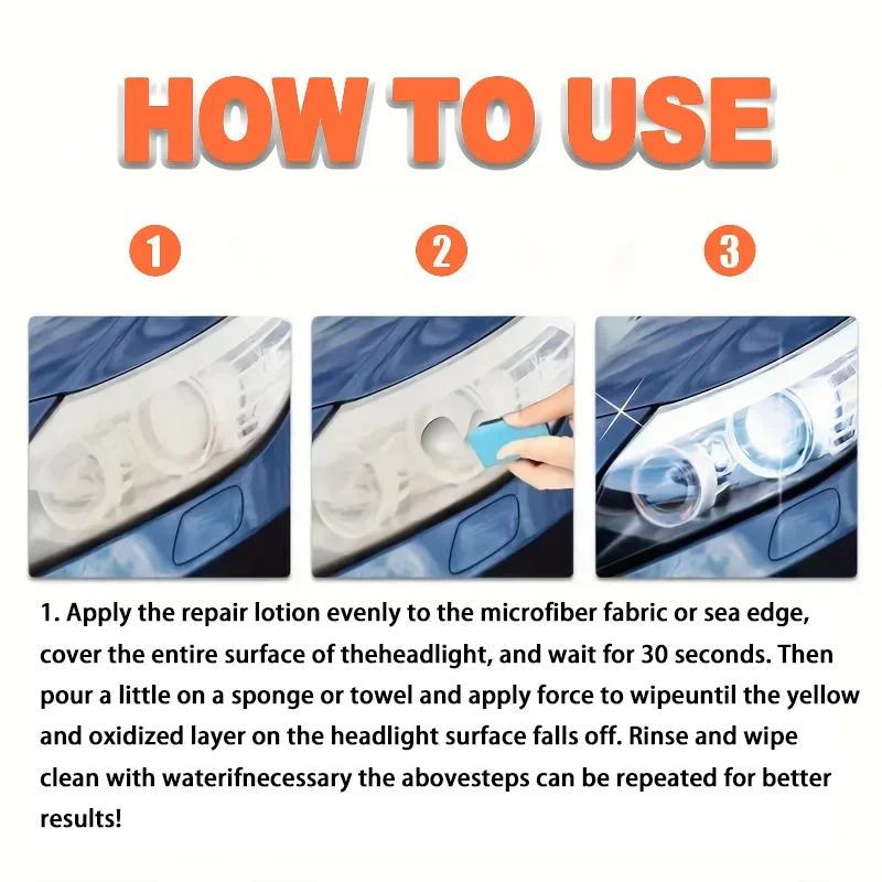 2.Efficient decontamination: Deeply clean the dirt and oil stains on the surface of the headlights and restore their original luster.