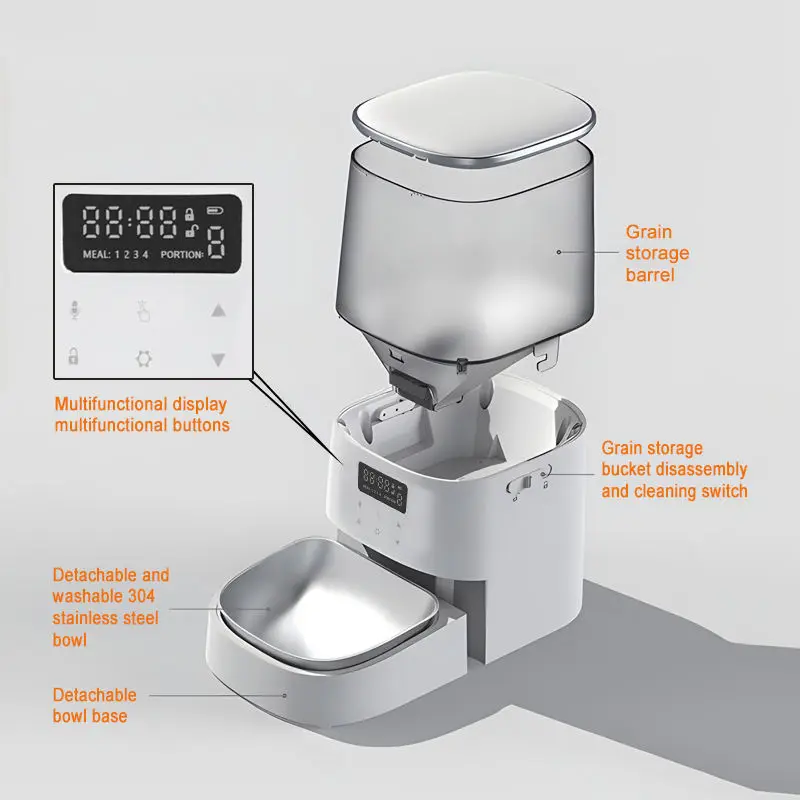 Hot Selling Intelligent 5L Smart Electric Pet Automatic Food Feeder Plastic Bottle with Double Stainless Steel Bowls Dog's Feed