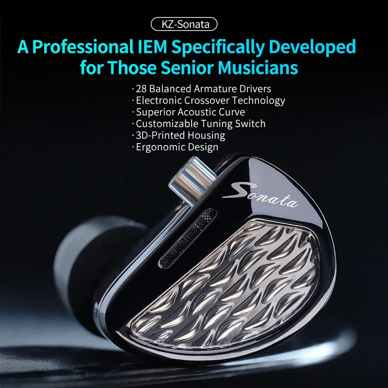 KZ Sonata 14BA 28 Unit Balanced Armature Drive In Ear Earphones Electronic Frequency Division Earbuds Hifi Monitoring Headphones