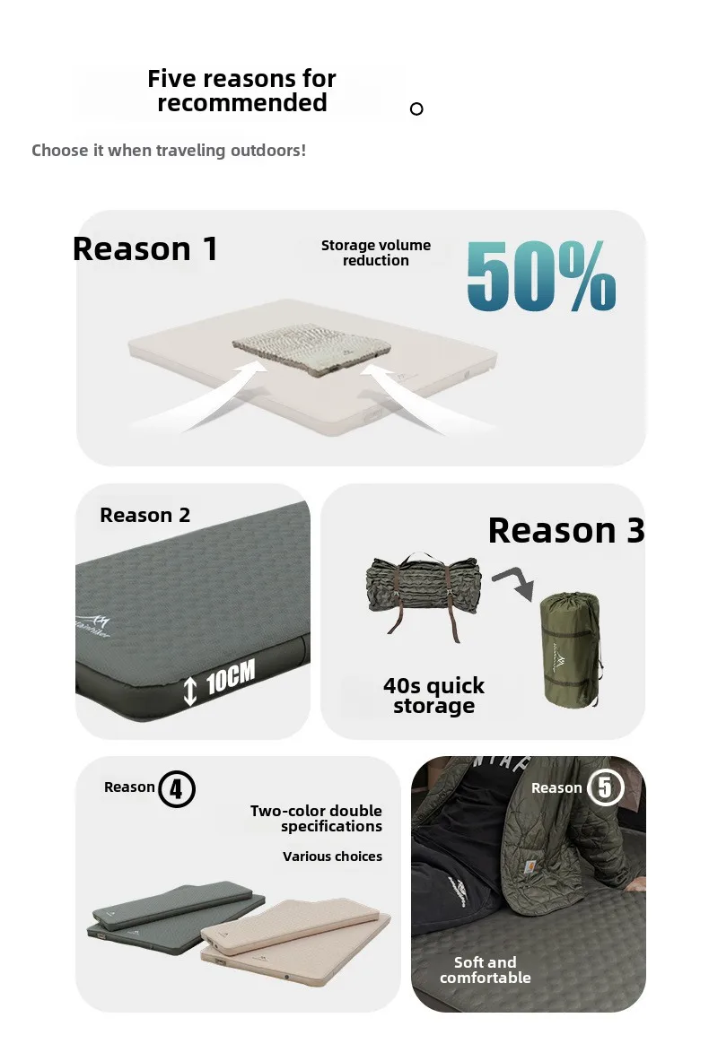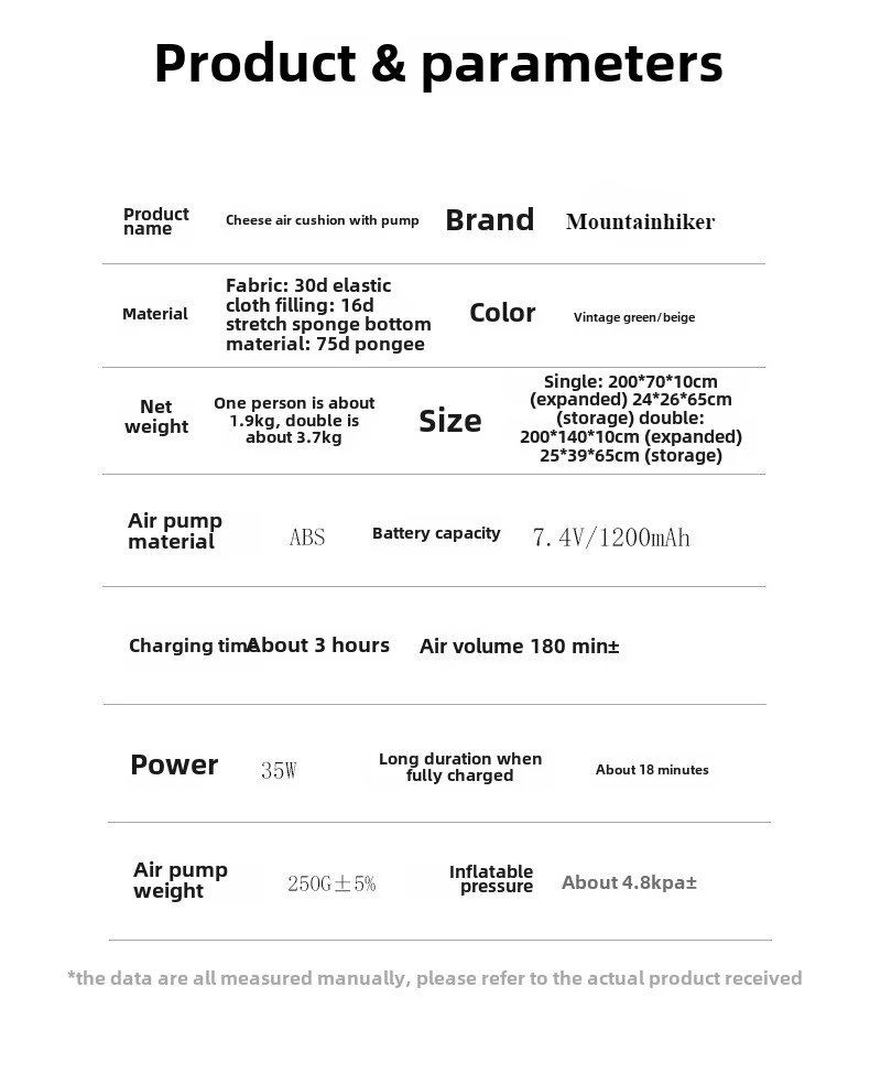 Mountainhiker Outdoor Single Double Air Cushion Air Pump Automatic Inflatable Bed Portable Camping Inflatable Moisture-proof Pad