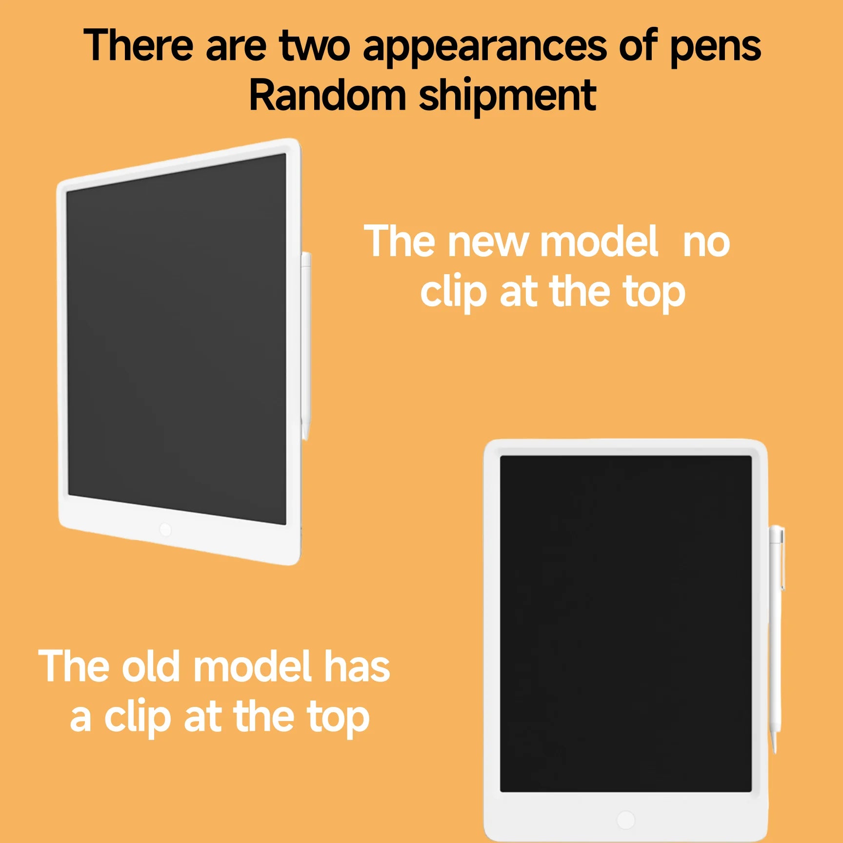 The Xiaomi MiJia LCD blackboard comes in two versions of packaging: the new and the old. They have the same functions and appearance, but the pen tips they come with are different. The new model doesn't have a pen clip, while the old one does.
