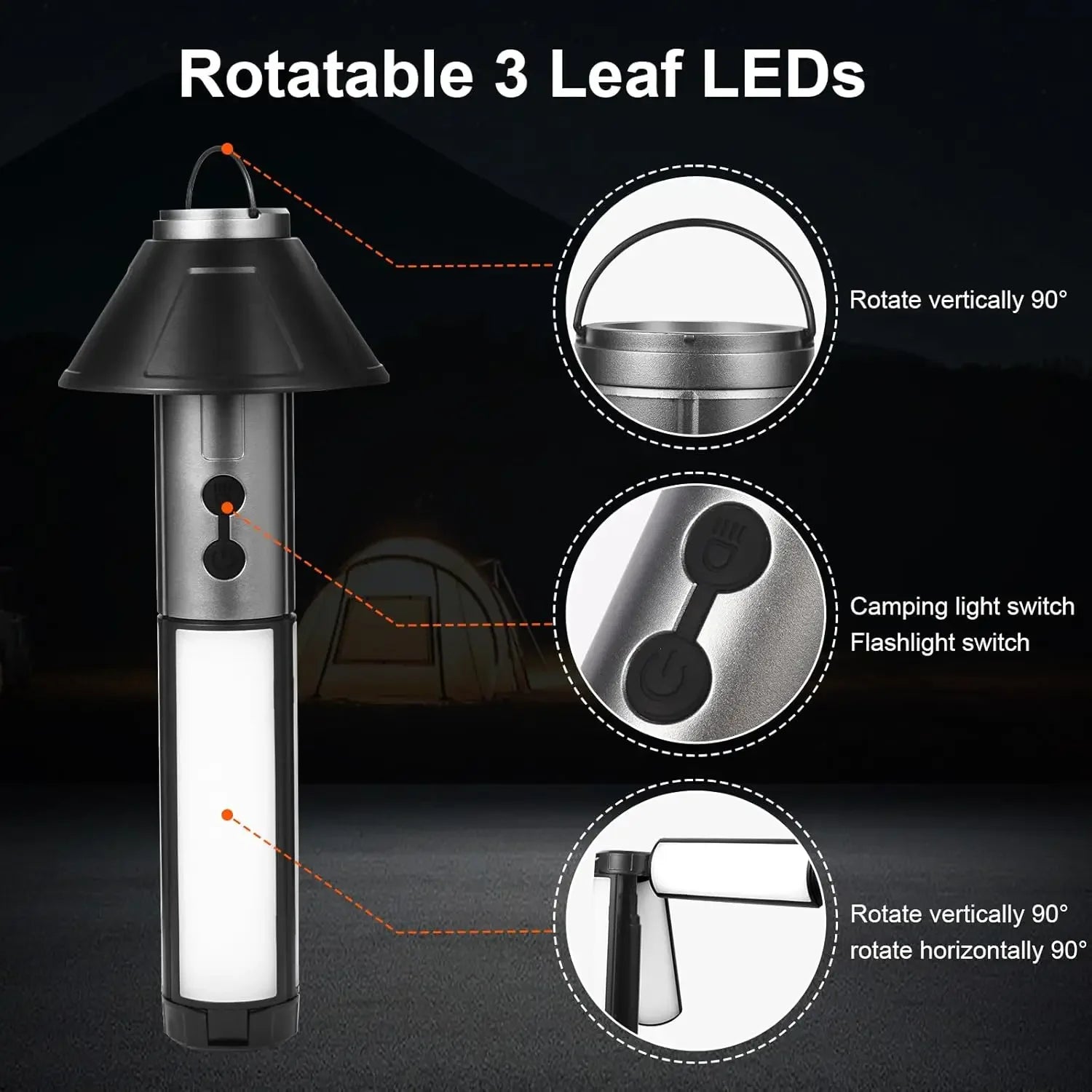 Rechargeable Camping Lamp Zoom Waterproof Tent Light 270° Rotatable Outdoor Light Portable Flashlight For Travel Fishing Work