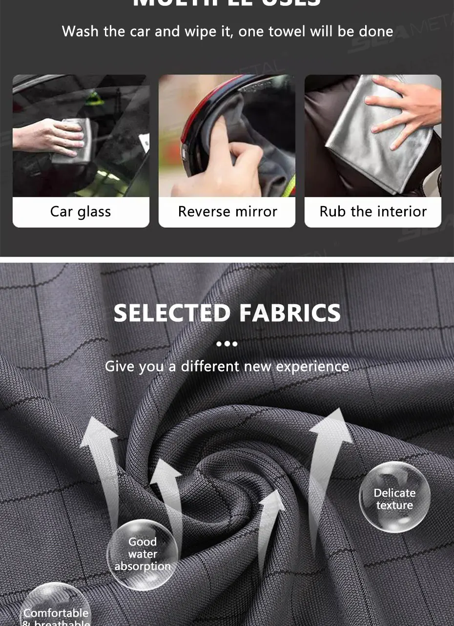 SEAMETAL Carbon Fiber Car Cleaning Cloth Washing Towel Lint-Free Glass Window Polishing Cloth Car/Household Universal Clean Rag