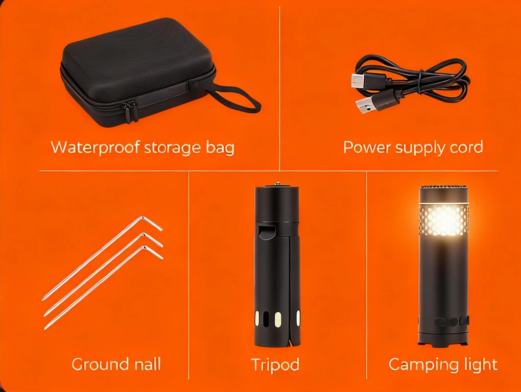 This innovative camping lamp is equipped with a telescopic tripod and lamp post, with a magnetic base and locking rod that can be firmly fixed on a metal surface or on the ground, and can be flexibly used in multiple ways to meet various terrain lighting needs. When not in use, outdoor camping lights can be folded into flashlights for storage, making them an ideal equipment for outdoor enthusiasts.